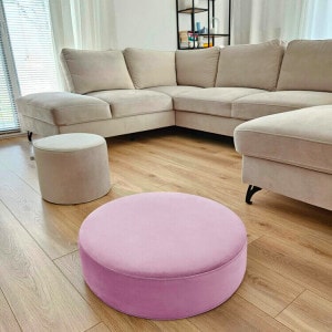 Pouf en tissu velours de très haute qualité. A l’intérieur du pouf se trouve une éponge stable de haute densité.